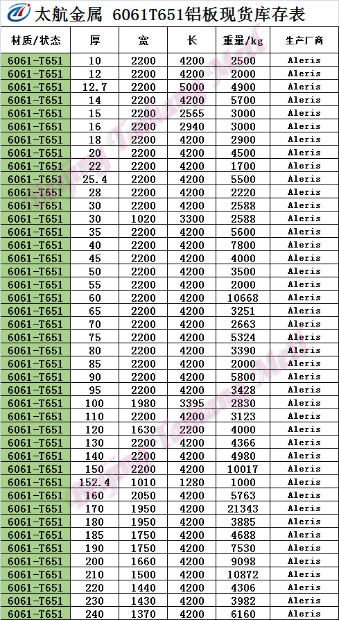 消除內應力的鋁板狀態用數字Tx51表示,如:6061T651、6082T651等。